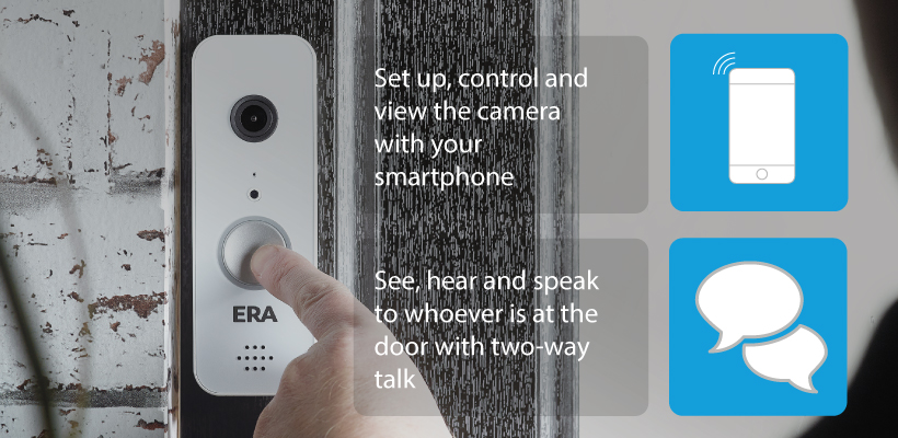 See and talk to whoever is at your door, from anywhere on a smartphone or tablet. The ERA Protect Video Doorbell alerts you when someone has pressed your doorbell, you can then view the live footage of the caller and converse with them. Two-way talk allows you to talk to the visitor at the door instantly, for example to explain that you’re not at home and to leave the parcel with a neighbour.