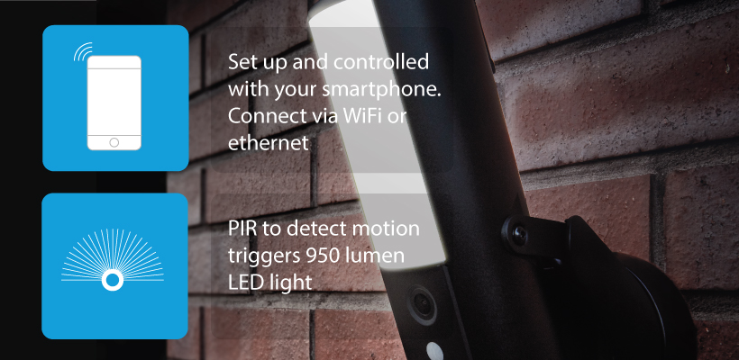 The in-built PIR detects motion and triggers the 950 lumen LED light. The camera has live view capability day or night and built in two-way talk, so you can speak to someone via the camera as well as hear them.