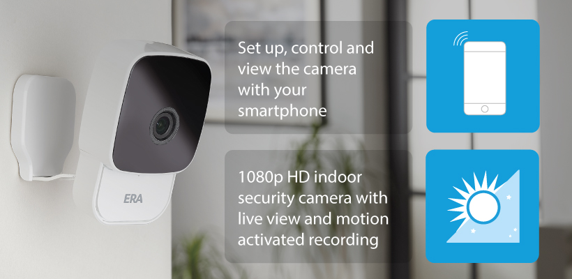 See and hear what’s happening inside your property, from anywhere on a smartphone or tablet. The ERA Protect Indoor WiFi Camera alerts you when motion has been detected inside your home or business. You can watch the live video footage or review stored recordings from the ERA Cloud.