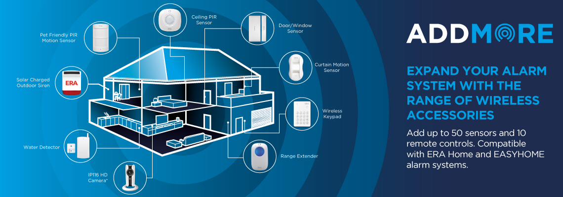 ERA HomeGuard, miGuard and EsayHome wireless alarms are modular and allow you to add up to 50 accessories and 10 remote controls. Such accessories are easily paired, even after installation, so you can add to / expand your system at any time. We have a variety of different accessories for a larger family, a larger home or that can offer enhanced lifestyle benefits to monitor and protect your home.