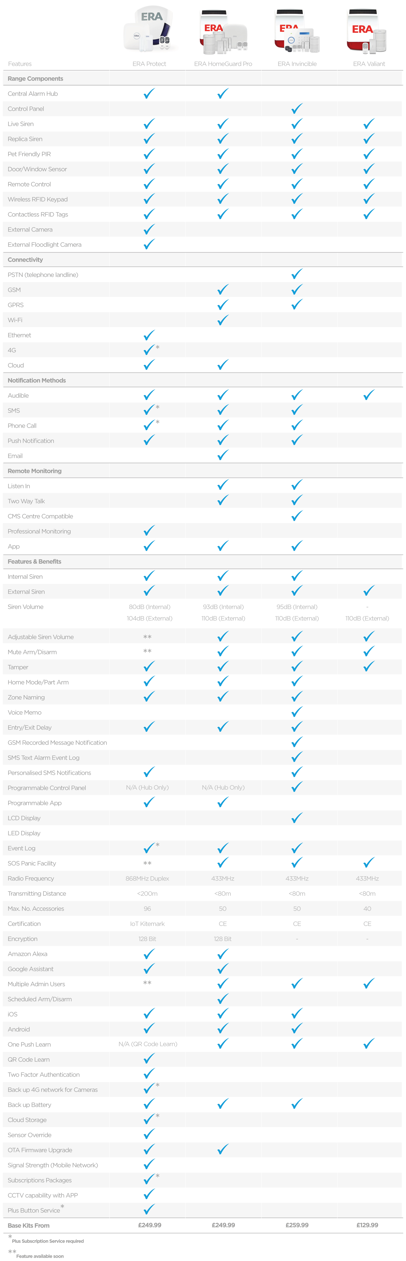 Not sure of the differences between our newest Integrated Smart Home Wireless Alarm System and the other ERA Wireless Alarms? Here is our handy comparison to help you out: